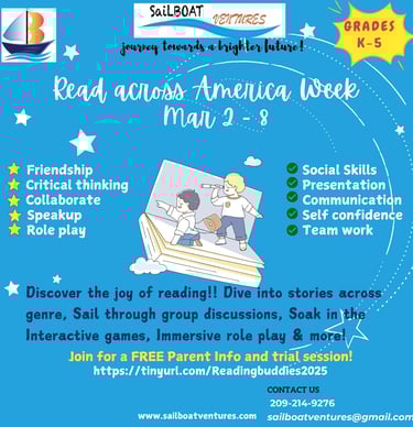 Join us and Celebrate "Read Across America Week" (Mar 2- 8) ! FREE Parent Information session and trial class available for K-5 grades.
