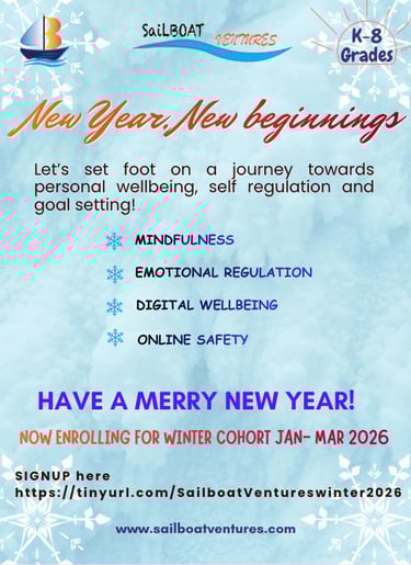 Happy New Year Families! Welcome to our winter program that offers everything that our kids need to navigate the world this winter, in terms of personal and digital well-being 🤔⛈️🧘🧘🏻♀️.